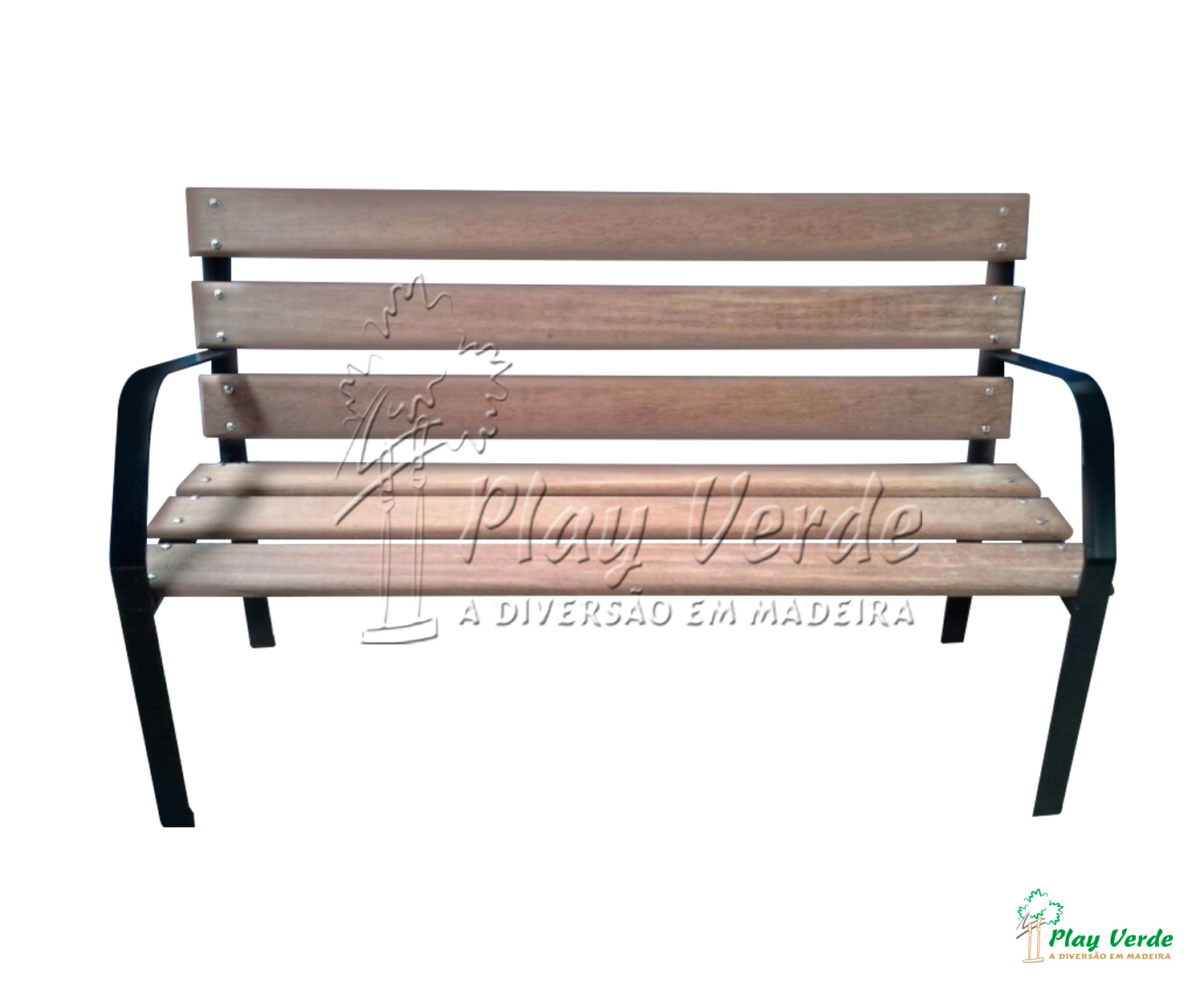 Banco com encosto e apoio para braço, assento e encosto compostos por 6 réguas em Cumaru. Esse banco é ideal para jardins, praças, shopping centers, dentre outros.