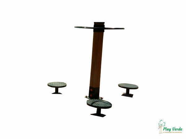 Base em eucalipto autoclavado, barra circular e pratos giratórios em tubo galvanizado com pintura eletroestática.